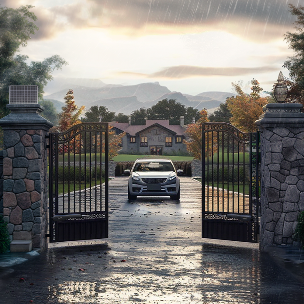 Modern gates, like the Zumi series, use infrared safety sensors to prevent the gate from closing on a car or a person.